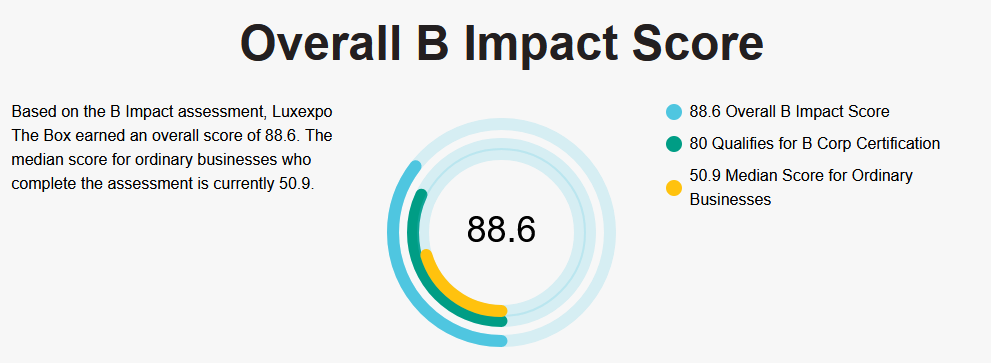 Avec un score global de 88,6 points, nous avons dépassé la moyenne des entreprises et prouvé notre volonté d’être un acteur du changement. A savoir qu’il faut 80 point minimum pour devenir B Corp.